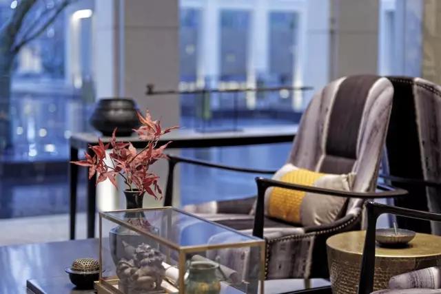 玻璃窗外,暮色朦朧氤氳中,充盈著(zhù)自然的綠意,一處盆景,暖樹(shù)染綠,更添別樣情致。深色的金屬和皮革的質(zhì)感,簡(jiǎn)化形態(tài)的中式家具,香爐書(shū)卷,幾處綴花,穿越時(shí)空,對話(huà)古今。“到處皆詩(shī)境,隨時(shí)有物華”大抵如此。