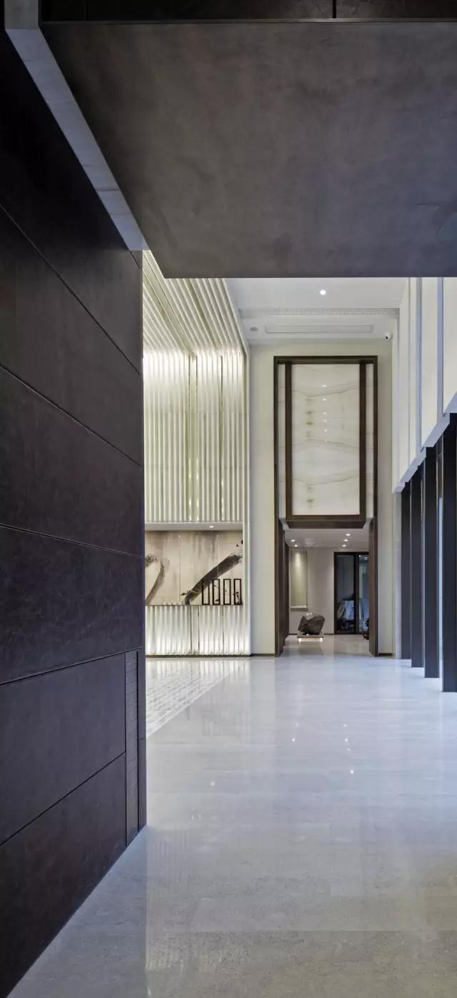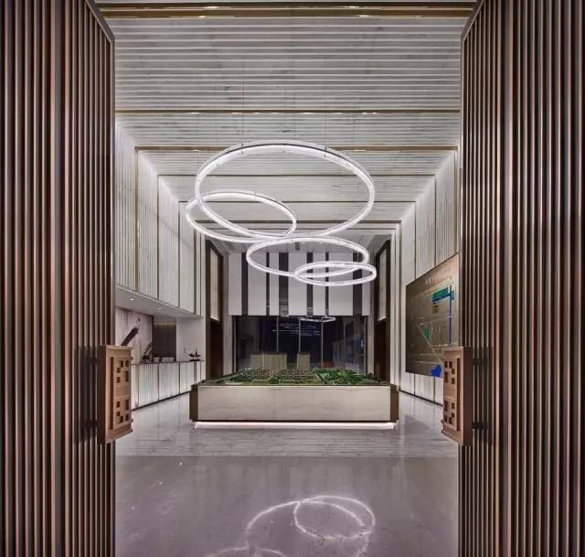 穿過(guò)充滿(mǎn)東方韻味的水中步道,在移步易景的氛圍里,不自覺(jué)地調慢身心節奏,悠然步入接待中心。設計師不拘泥于傳統石材的形體結構和飾面方式,大膽創(chuàng )新地更改重構。