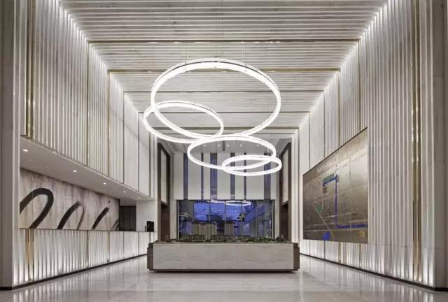 大型吊燈宛如運河之水泛起的漣漪,靈動(dòng)唯美,抓人眼球。地面低調華麗的灰色大理石與之遙相呼應,古代先哲素有“天圓地方”之說(shuō),意境深遠的寫(xiě)意格調翩然入室,整個(gè)空間滲透著(zhù)典雅尊貴的氣派。